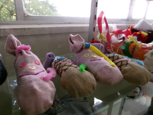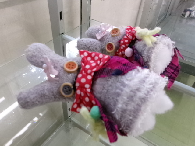 3年生 図工 「うまれかわった なかまたち」 使われなくなった手袋や靴下、タオルなどが、かわいい生き物たちに生まれ変わりました。飾りの材料を工夫して、おしゃれに仕上がっています。こちらは、2階昇降口廊下に展示しています。 |