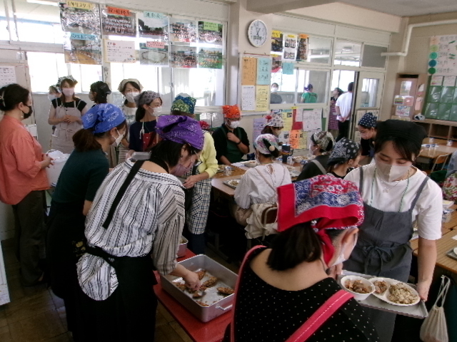 10月2日(木) 給食試食会 6年生が修学旅行に行っている間の教室をお借りして、1年生の保護者の方を対象とした給食試食会を実施しました。メニューは、福島県の郷土料理「舞茸ごはん、さばのカレー風味揚げ、ことじ、牛乳」です。試食会後には、好評の感想をいただきました。栄養士、調理員一同、今後もおいしい給食を作って参ります。ご参加いただきありがとうございました。 |