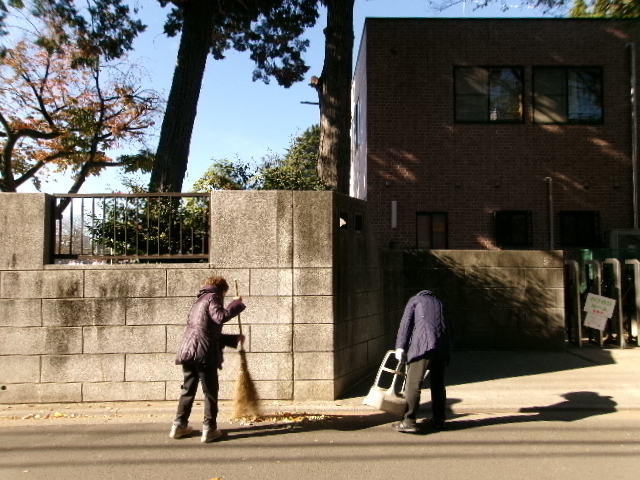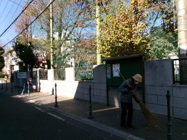 12月10日(水) 地域ボランティア 落ち葉掃除 常盤小学校は、たくさんの木々に囲まれています。そのため、秋からこの季節にかけてたくさんの落ち葉が歩道に広がってしまいます。毎日掃除をしていますが、追いつかないこともあります。そのため、地域ボランティアの方々のご厚意で落ち葉を掃いてくださいました。 |