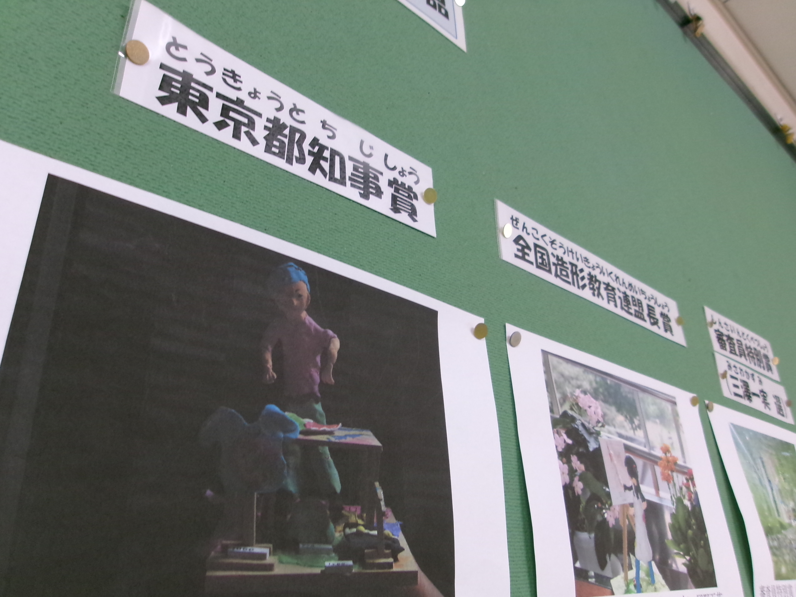 12月18日(木) 6年生 全国学校図工・美術写真 公募展 2階北校舎の渡り廊下には、全国学校図工・美術写真公募展の入賞作品が展示されています。自分で造った立体作品を一眼レフカメラで撮影しました。東京都知事賞や全国造形教育連盟長賞、審査員特別賞など、素晴らしい賞をいただきました。 |