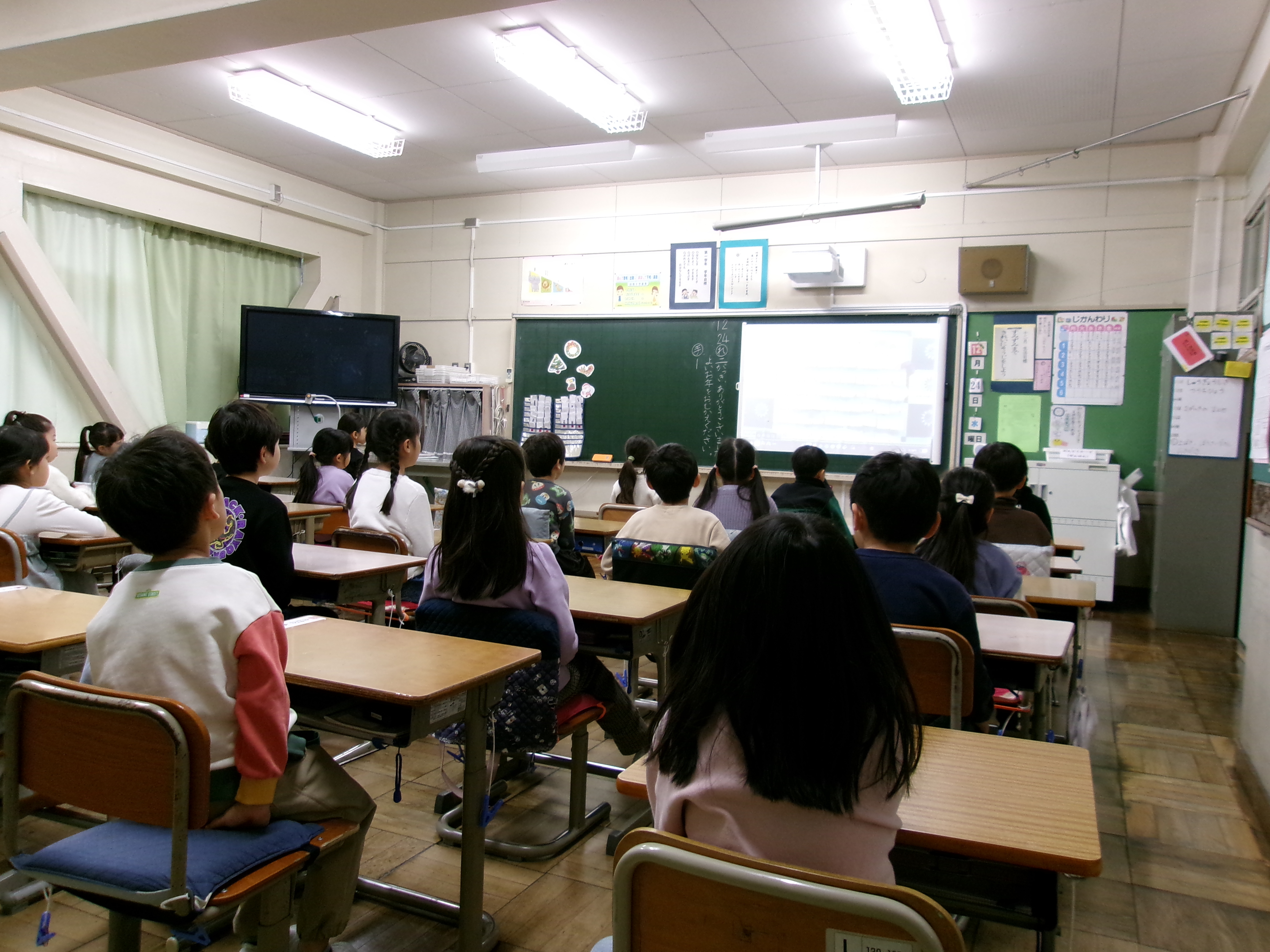 どの学級の児童も、話をしっかりと聞き、楽しみな冬休みと3学期への意欲を示していました。保護者の皆様には、今学期も本校の教育活動にご理解・ご協力をいただきありがとうございました。どうぞ、よいお年をお迎えください。引き続き、3学期もよろしくお願いいたします。 |