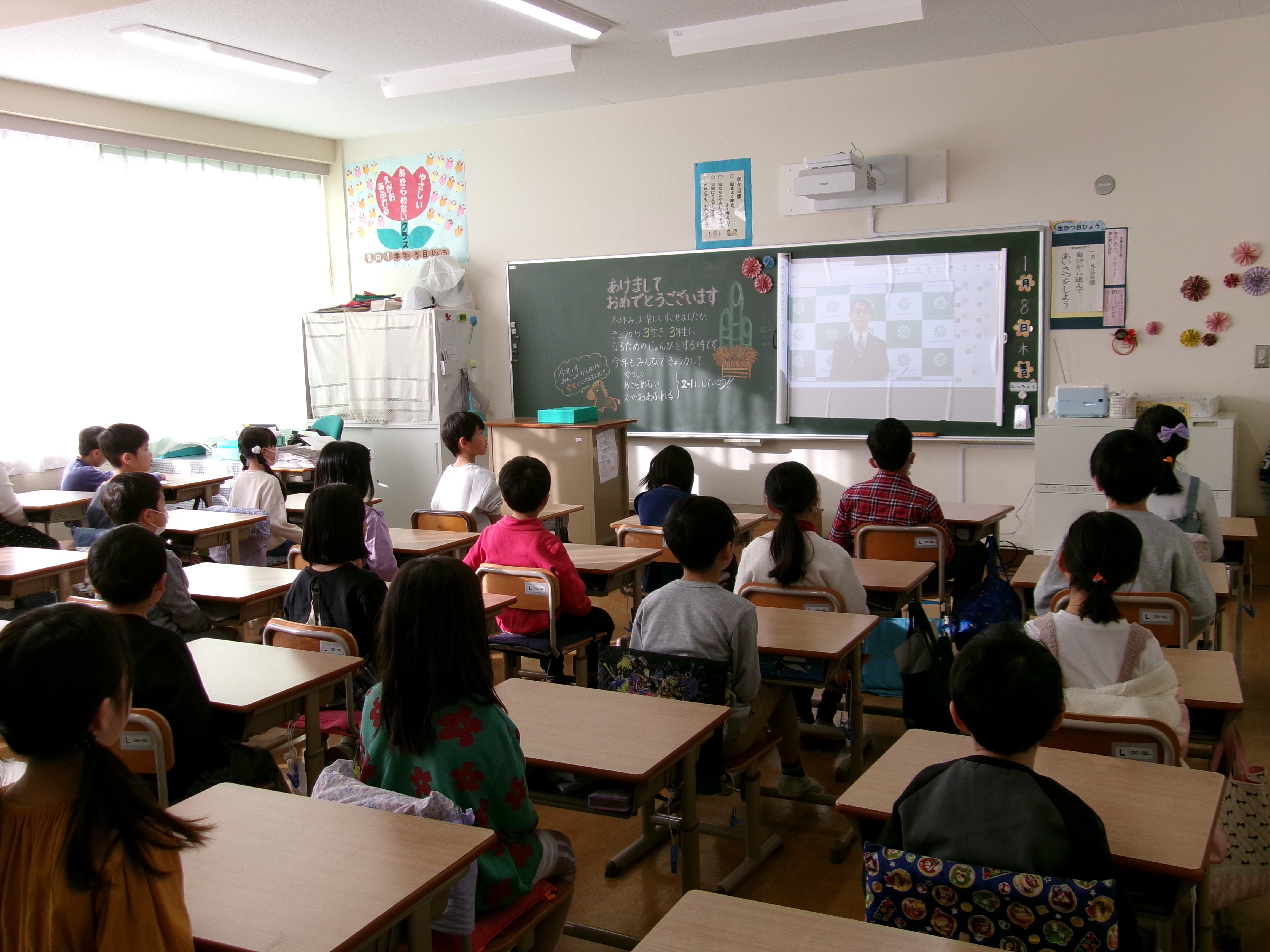 1月8日(木) 3学期 始業式 今日から3学期が始まりました。久しぶりの学校に子どもたちの元気な声が響いていました。校長先生からは、あいさつの他、「学校は勉強するところ、友達と仲良くするところ」のお話がありました。明日から給食が始まります。 |